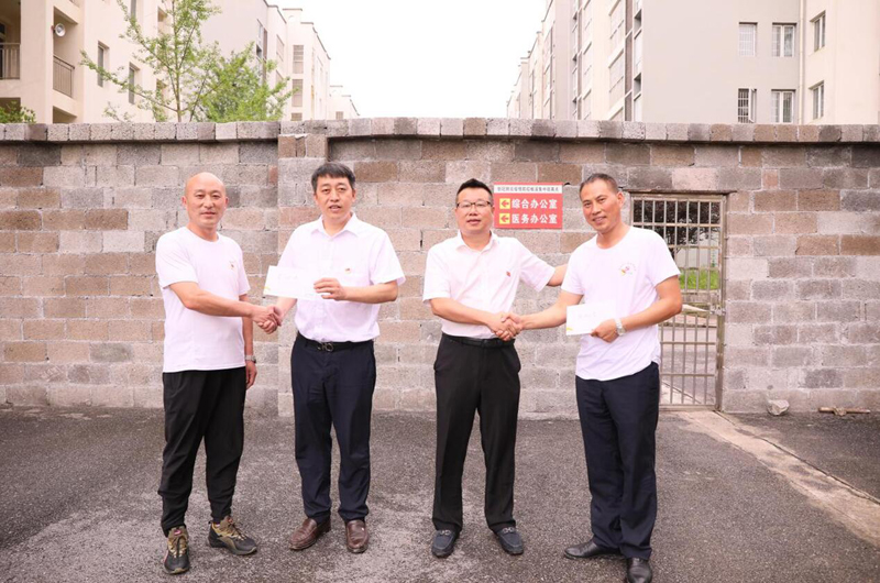 參觀考察和紀念活動結束后,黨總支副書記楊秀峰、張光流深入板溪疫情隔離點走訪慰問困難黨員冉紅光和抗疫一線黨員晏欲曉。
