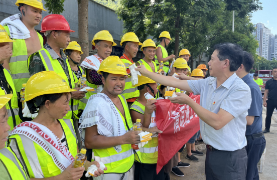 烈日炎炎,天光灼灼,立秋時節(jié),酷熱未散。為關(guān)愛辛勤奮戰(zhàn)在高溫一線的工人,8月9日,酉州實業(yè)工會組織開展“清涼進(jìn)工地·溫情暖人心”慰問活動。集團公司班子成員分兩個組分別帶領(lǐng)工會、黨群部、綜合部、工程部等相關(guān)人員走訪慰問了集團組織實施的重點項目工地,為辛勤奮戰(zhàn)在施工一線的工人送去礦泉水、冰紅茶、西瓜、清涼油、藿香正氣液、手套、毛巾等防暑降溫物品,為他們送去集團全休干部職工的親切關(guān)懷和真情慰問。