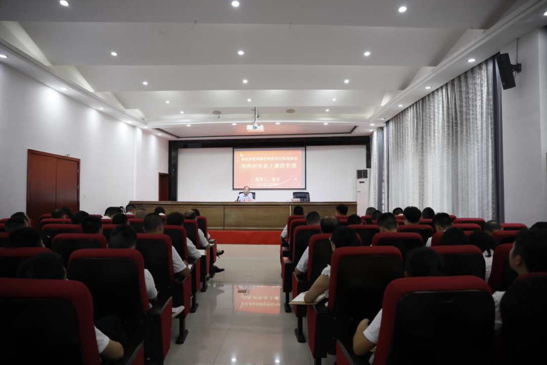 【7月20訊 田堃靈】 “國企領域是腐敗易發多發的重點領域,所以我們要經常用黨章黨規為自己的行為敲響警鐘.......”7月20日,酉州實業集團邀請縣紀委監委派駐財政局紀檢監察組組長張軍開展清廉國企專題黨課。集團班子成員、全體黨員、中層副職以上人員、各部室(子公司)關鍵崗位和風險崗位相關人員共計75人濟濟一堂,接受“廉潔洗禮”。